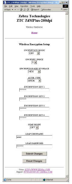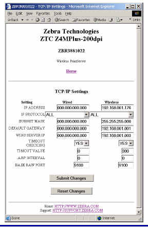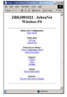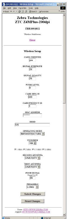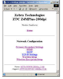 For full detail on these pages see the ZebraNet Wireless User Guide.