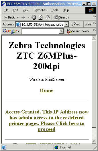 Click Access Granted link to be take to the page you were trying to access. View and Modify Printer Settings:
